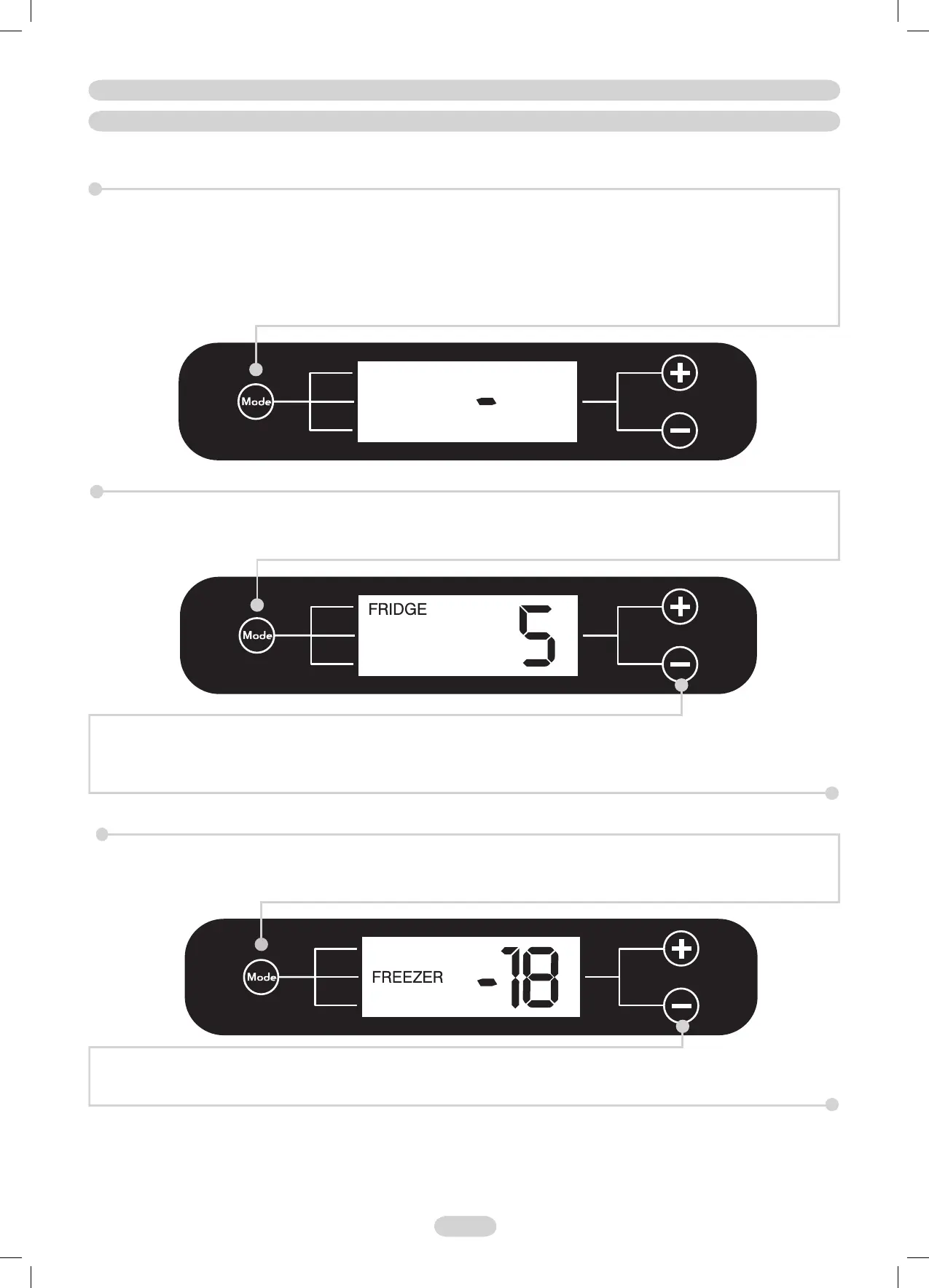 É possível mudar do modo Fridge (Frigorífi co) para Freezer (Congelador) premindo o botão MODE (Modo). É apresentada a palavra FREEZER