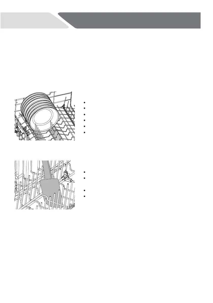 When loading your Dishwasher ensure items are placed so water coming from the rotating