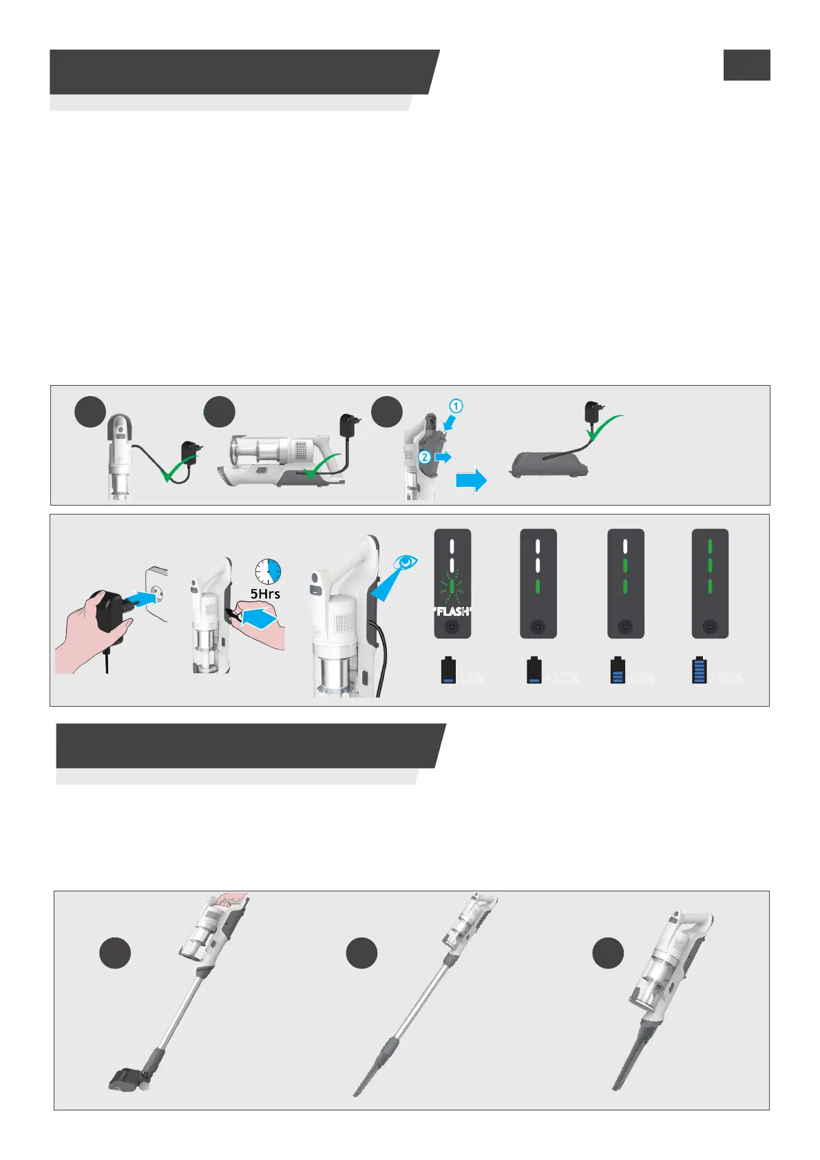 Für Ihren Komfort kann der Akku in 3 verschiedenen Zuständen aufgeladen werden.