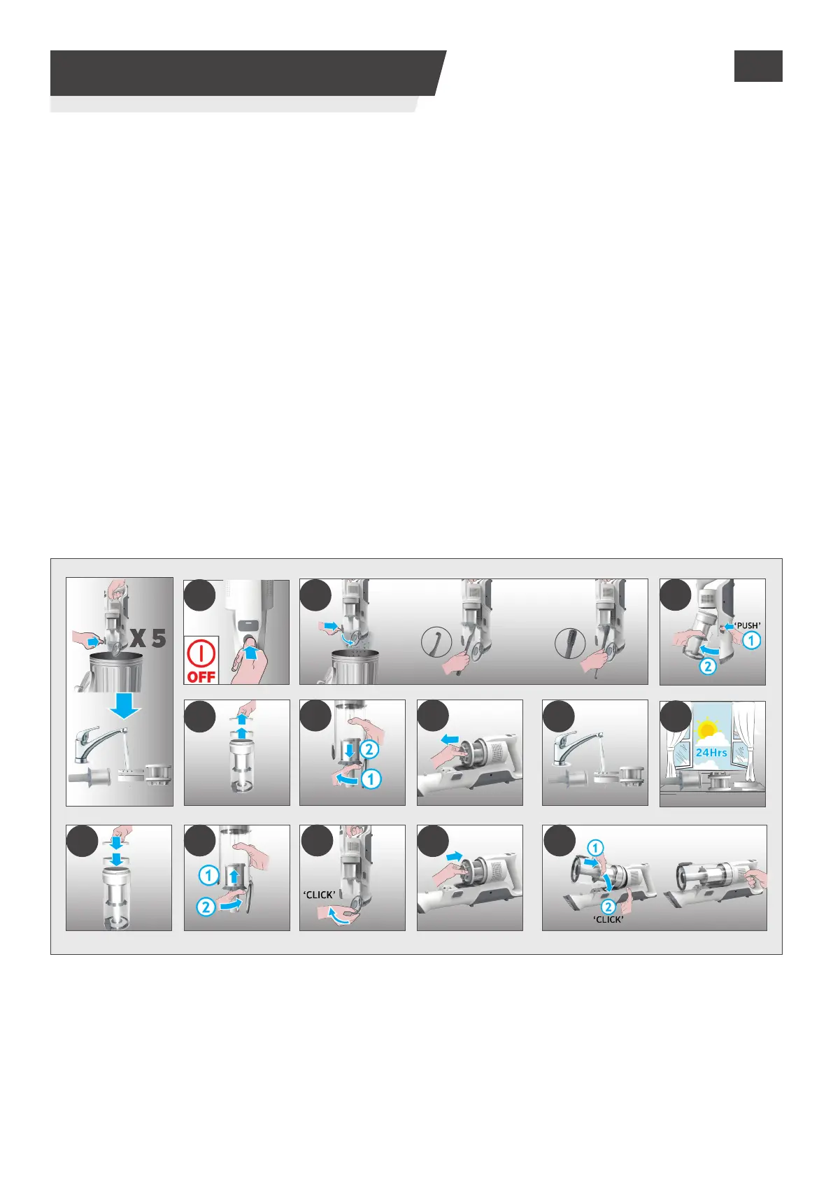 ie den Staubbehälter wieder in das Handgerät ein, bis Sie ein „Klicken“ hören.