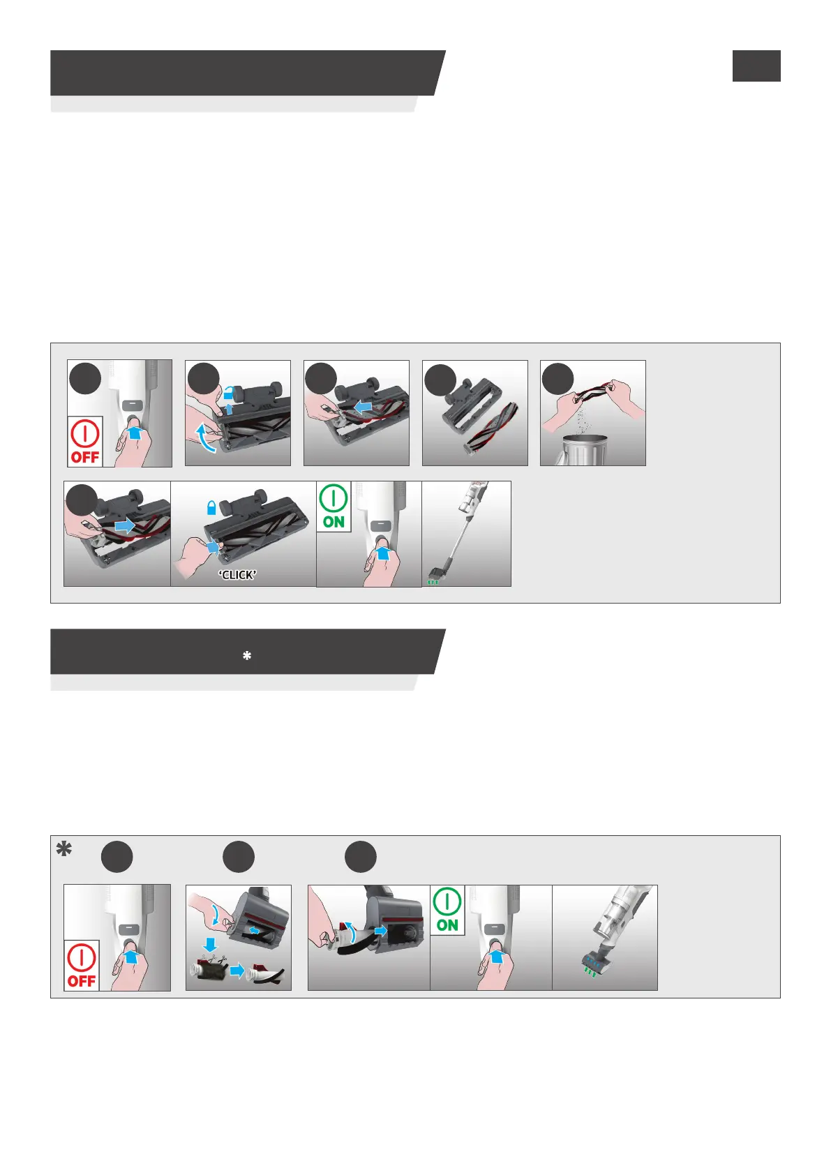 Bürstenwalze möglicherweise gereinigt oder größere Verschmutzungen aus dem Inneren der Düse entfernt werden.