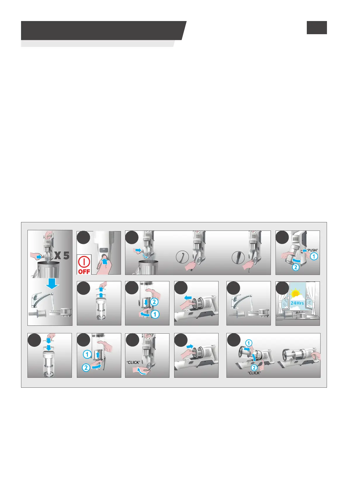 5. Verwijder het metalen lter uit het stofreservoir door het tegen de klok in te draaien en maak het schoon.