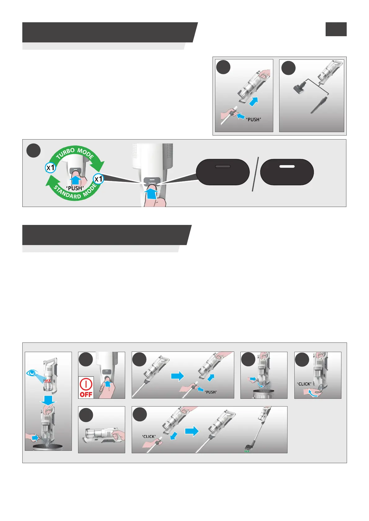 4. Lås støvsamleren fast med klaen opp. En klikkelyd høres når den er låst fast.