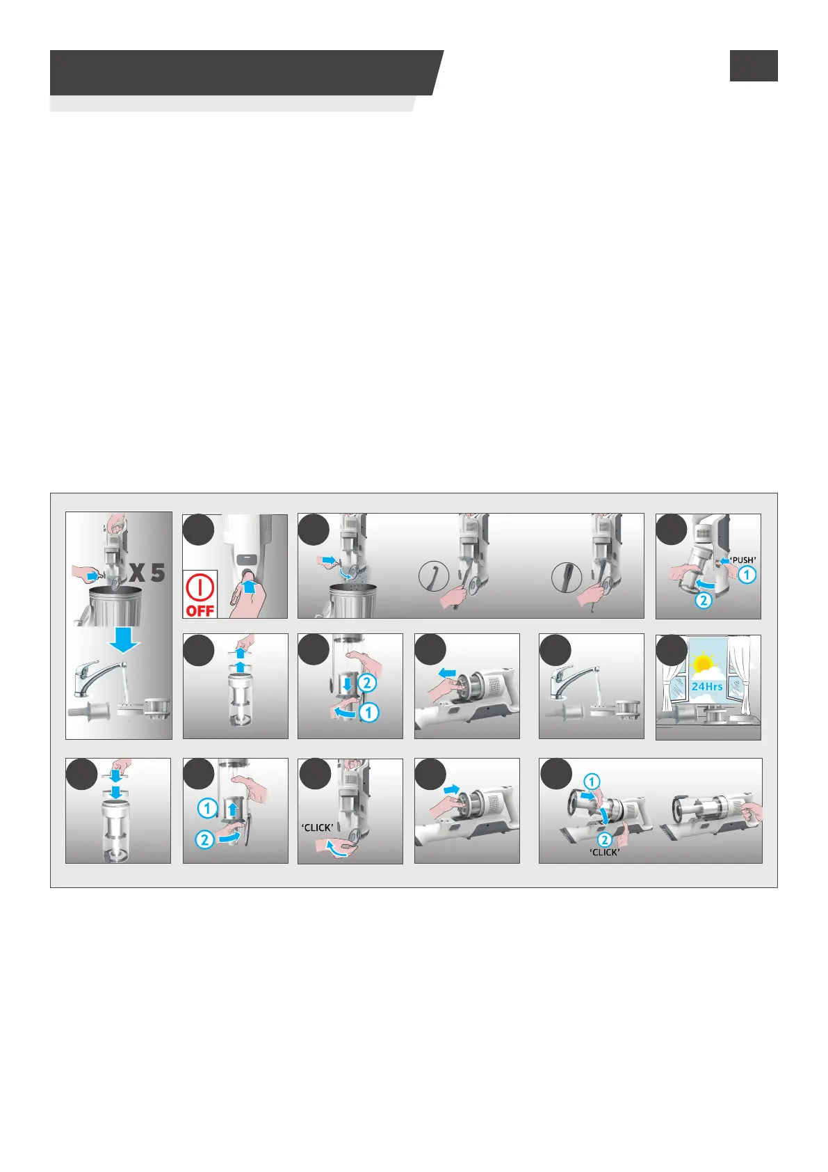 7. Vask ltrene og støvbeholderen med lunkent vann.