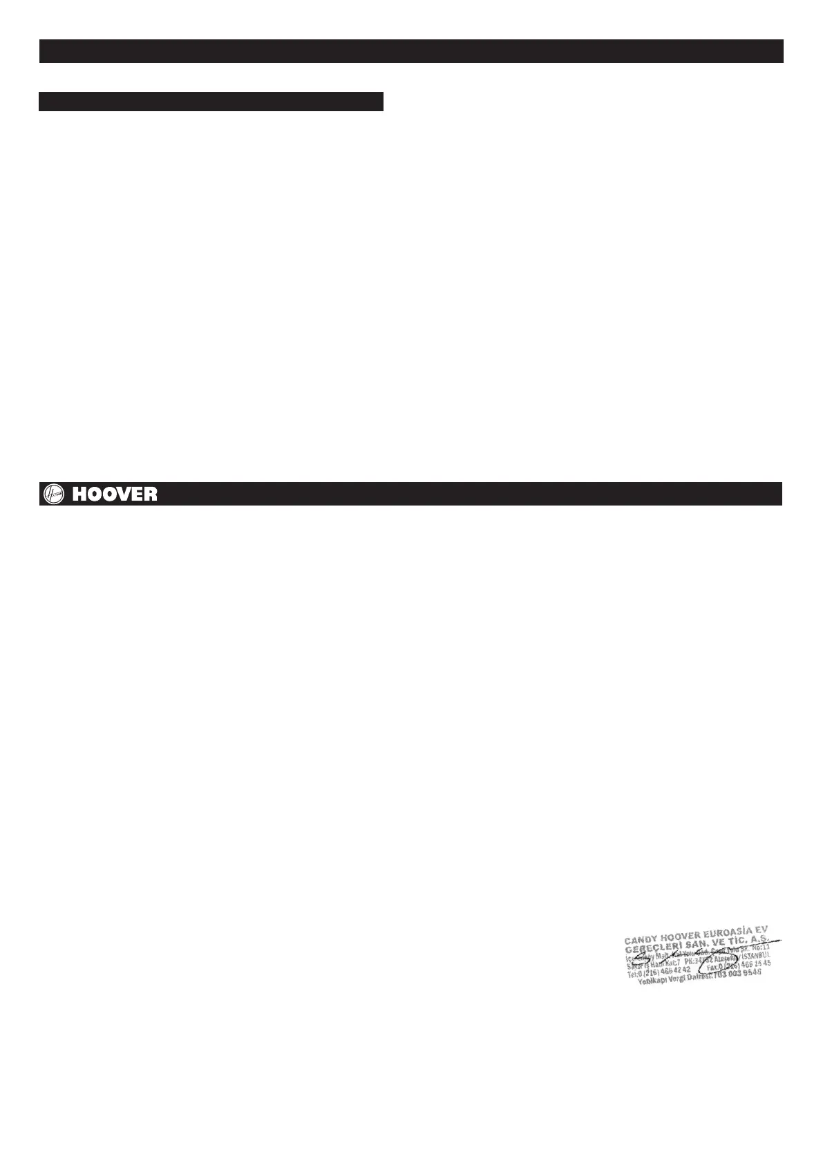 www.hoover.com.tr • servis@hoover.com.tr
