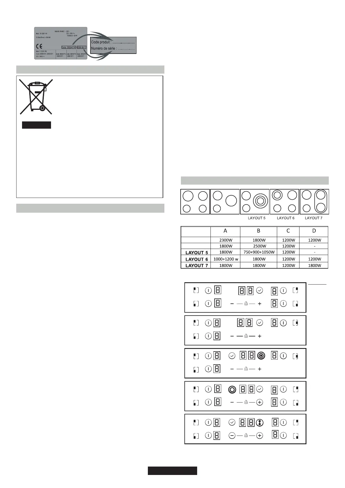 Identification Plate (located under the hob's bottom casing)