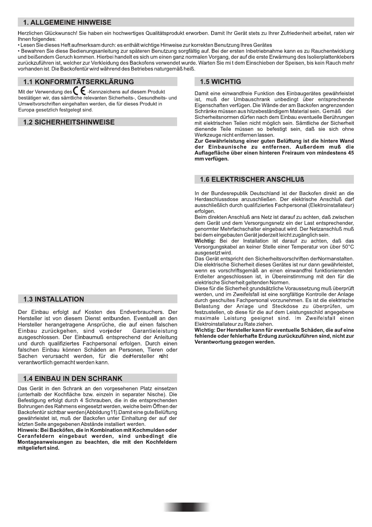 Die Mißachtung der vorgenannten Hinweise kann die Sicherheit des