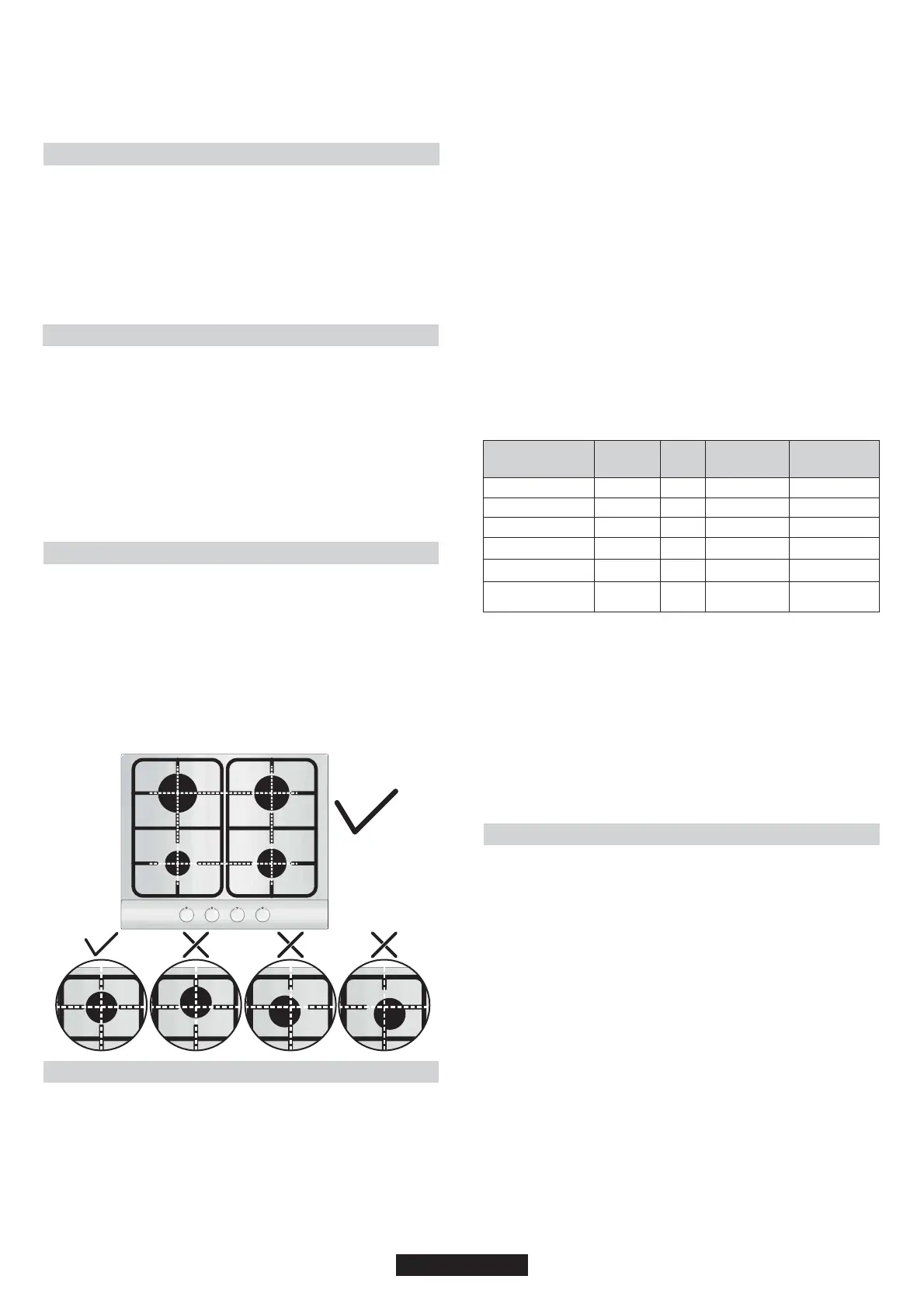 Bevor Sie das Gaskochfeld einschalten, überprüfen Sie, dass die