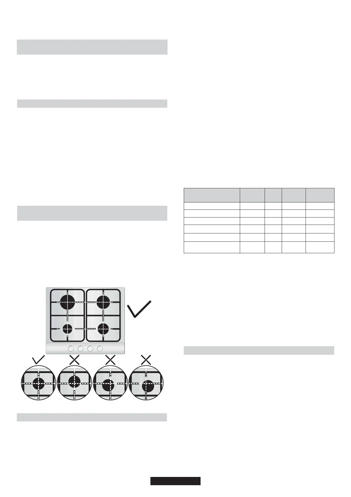 Antes de encender la placa de gas asegúrese de que los quemadores