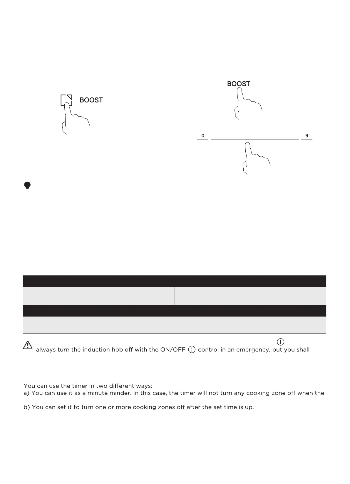 • As the boost function of 1st cooking zone is activated, the power level of the 2nd cooking zone is
