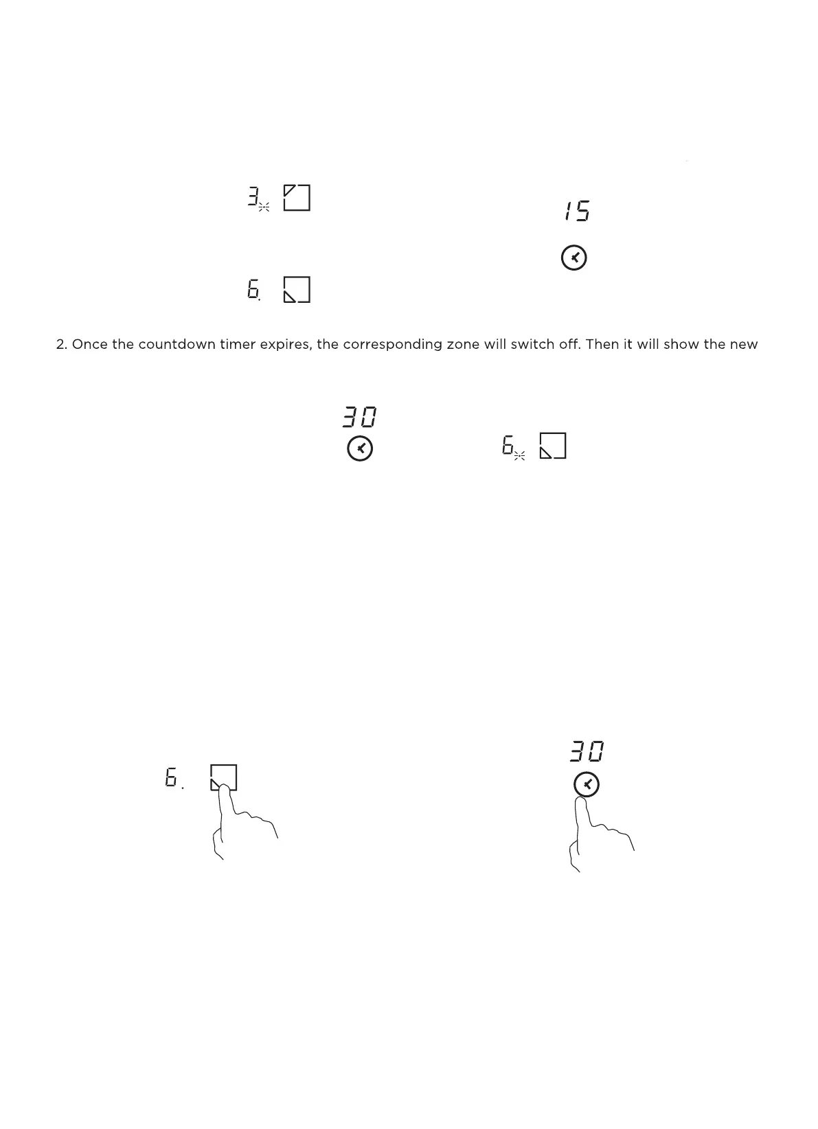 Touch the heating zone selection control, the corresponding timer will be shown in the timer