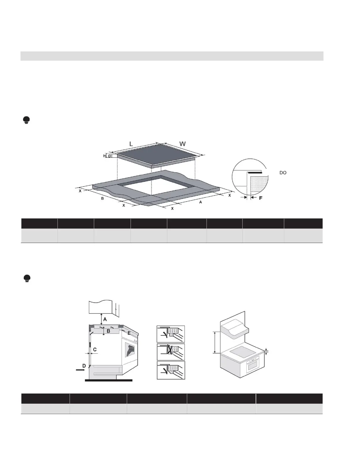 NOTA: La distancia de seguridad entre los laterales de la placa y las superficies interiores de la encimera debe