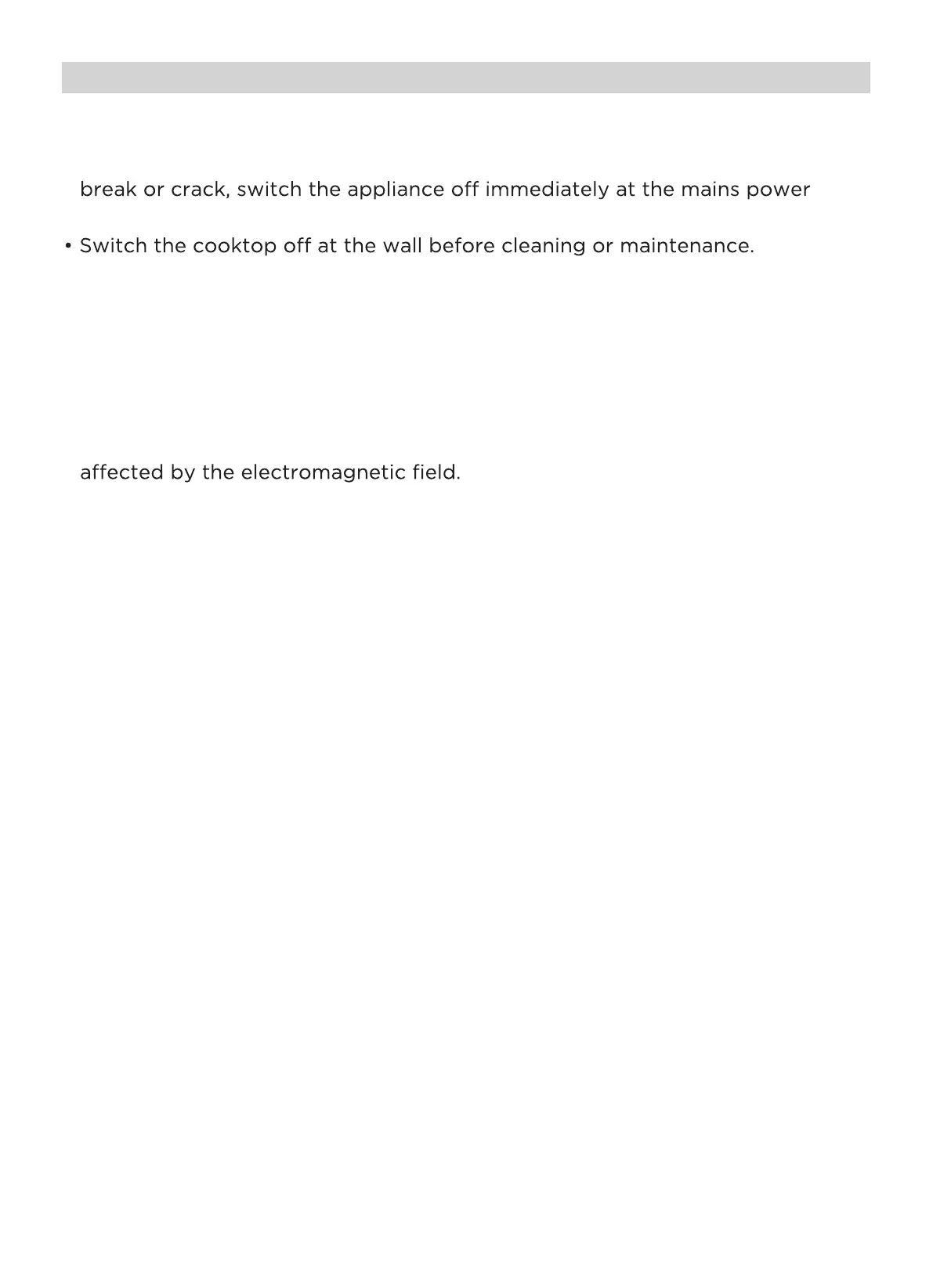 • Do not cook on a broken or cracked cooktop. If the cooktop surface should