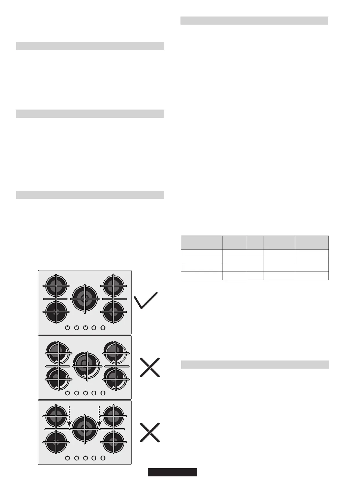 Vor der Verwendung der Kochstellen müssen Sie darauf achten, dass