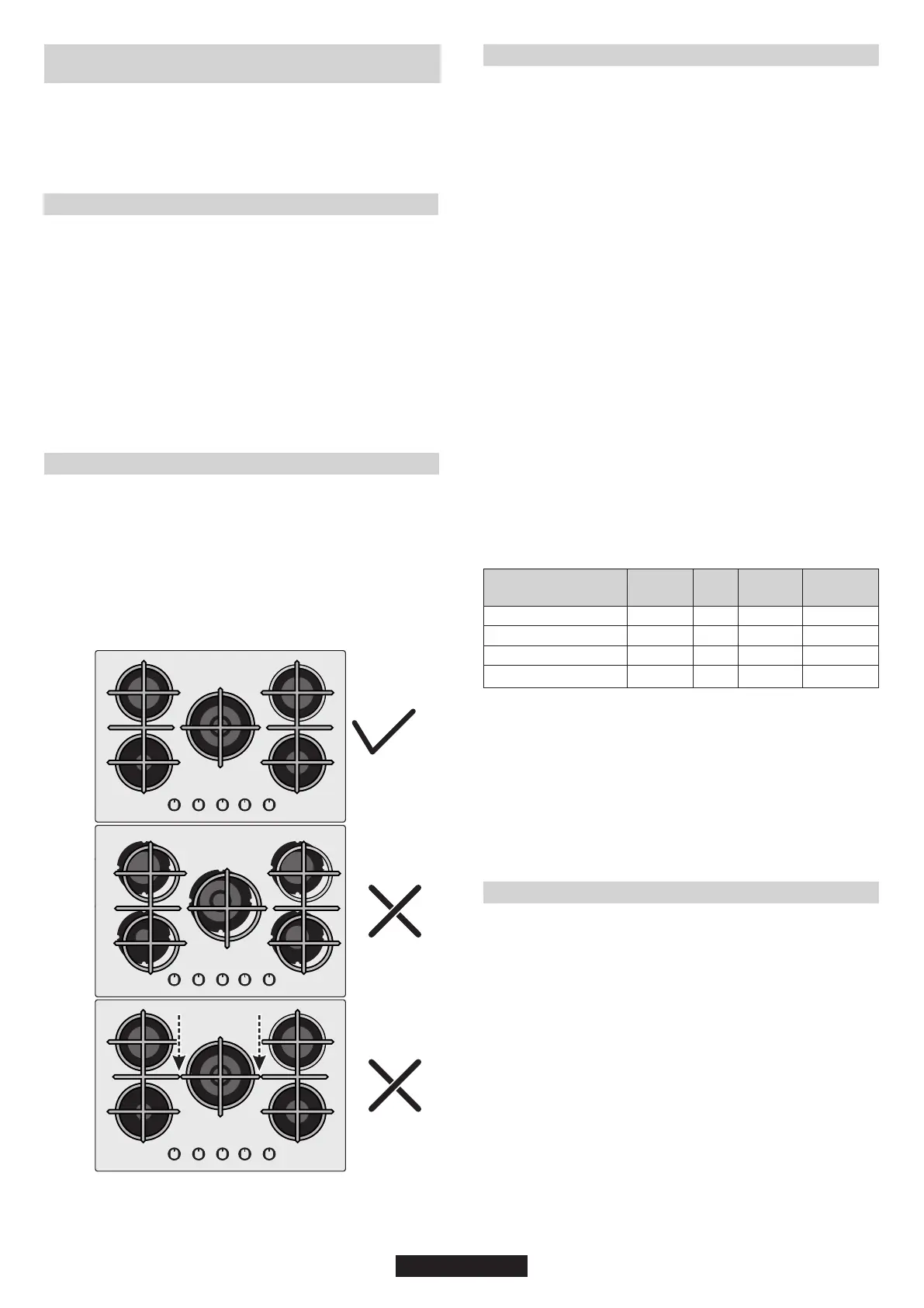şekilde gaz ocağı gözü ölçülerine uygun olmalıdır: Tablo A.