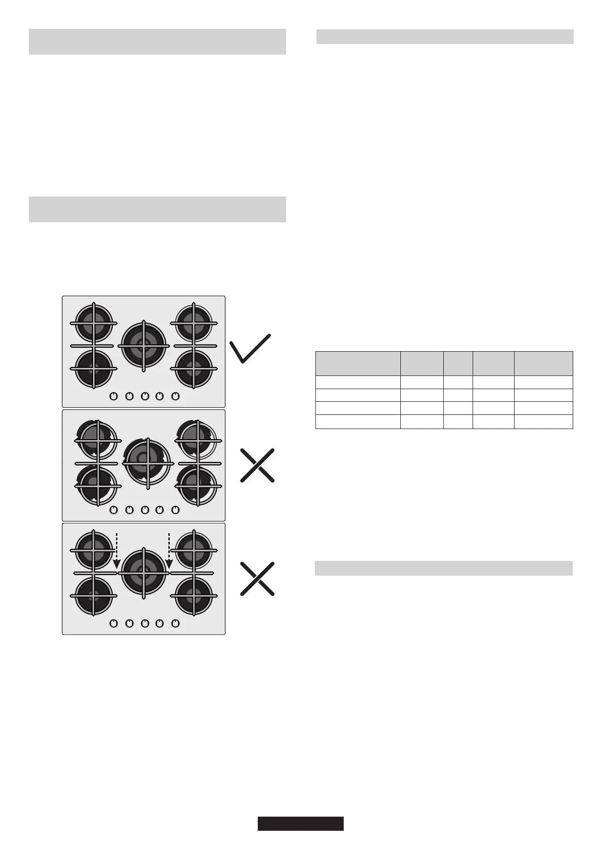 tablico s podatki o vrsti plina z ustrezno (priložena kuhalni plošči), tako