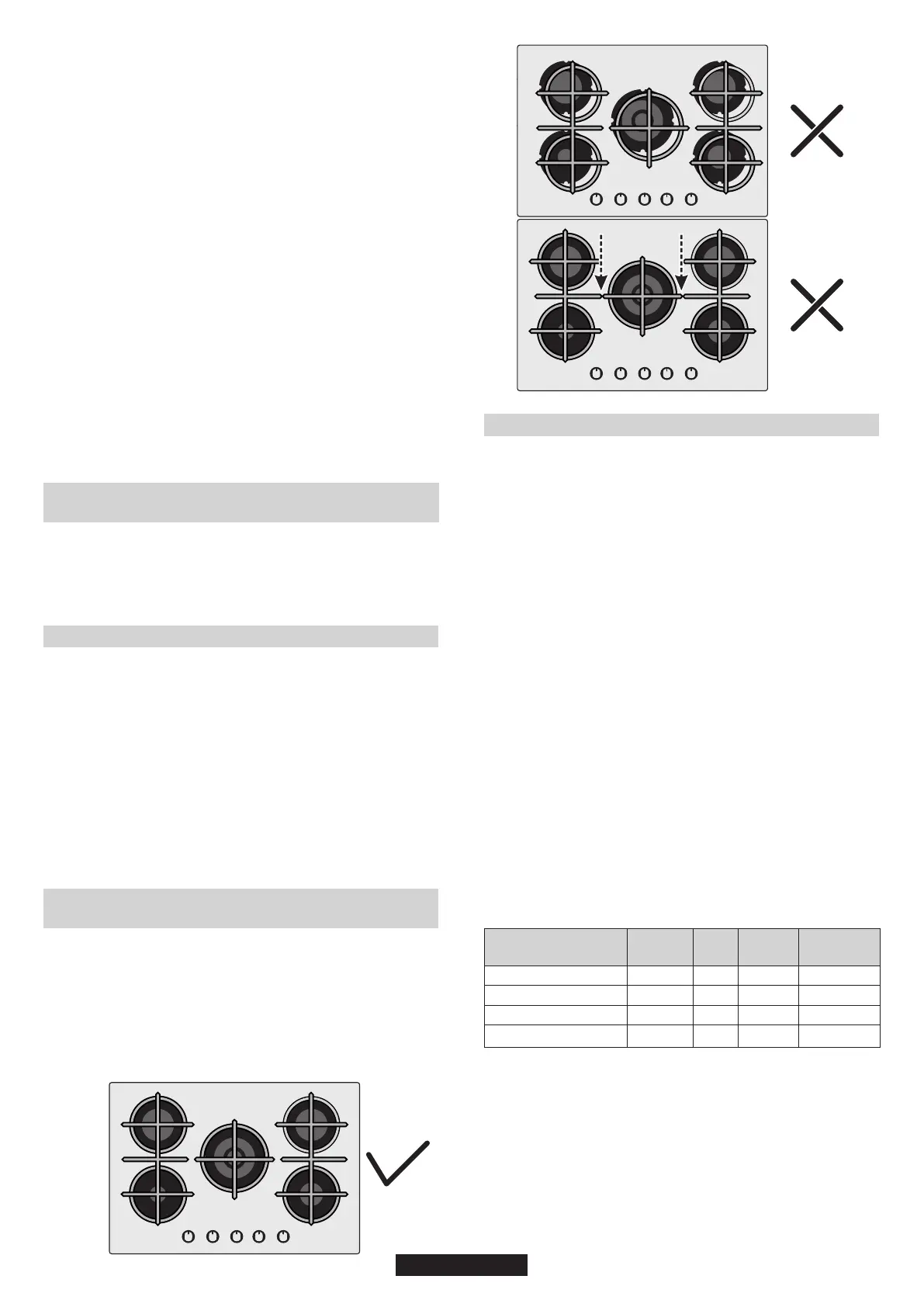 A tűzhelylap bekapcsolása előtt ellenőrizze, hogy a gázégők és az