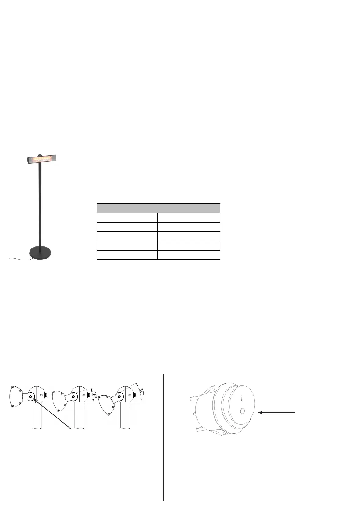 • To disconnect the patio heater, turn o the switch and then remove the plug from the wall