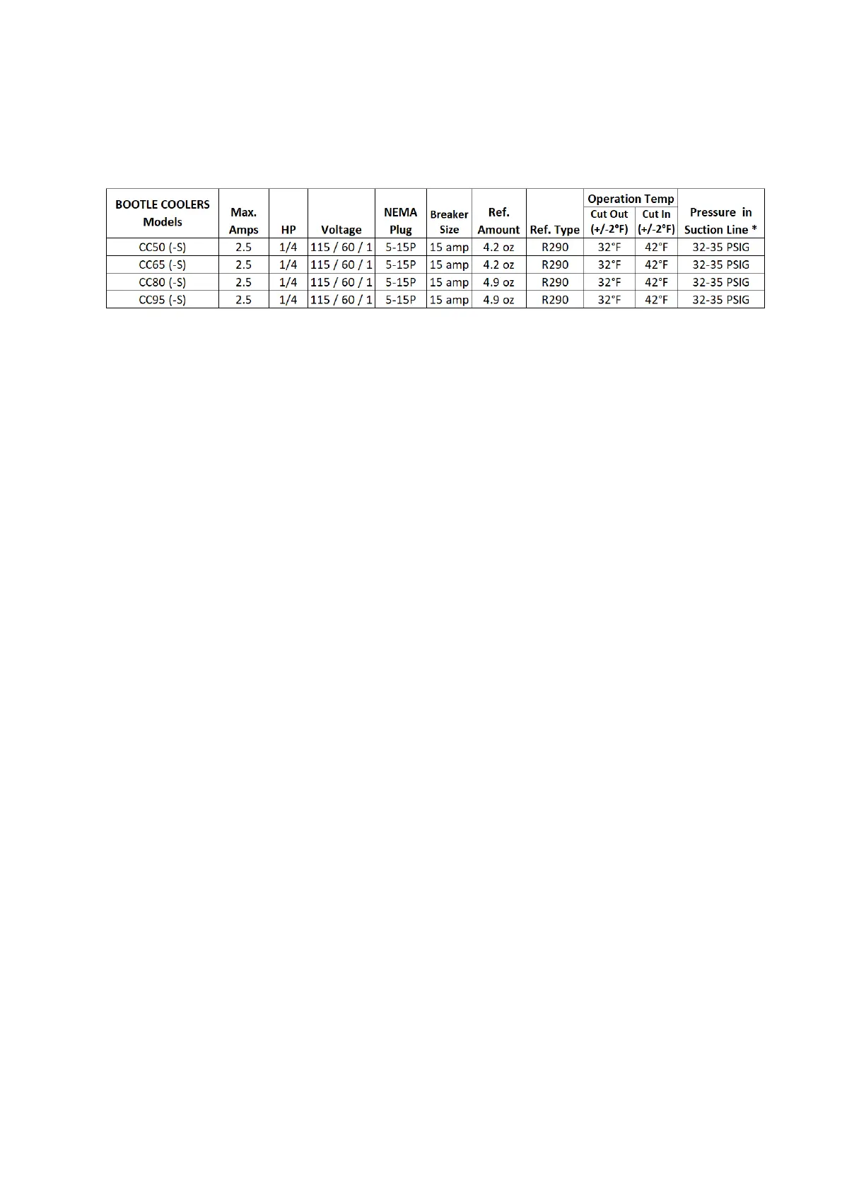 * Pressure suction measure at 90°F ambient temperature, models ending in -S means