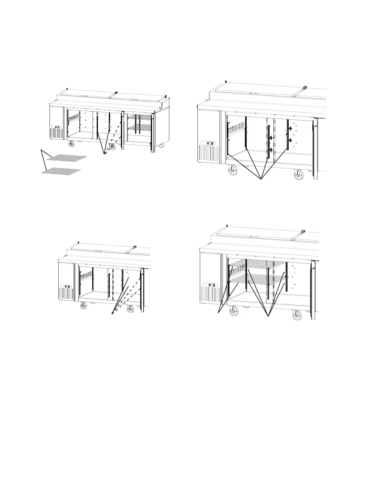 7) Remove the shelves from the door section, then remove the pilasters and place and
