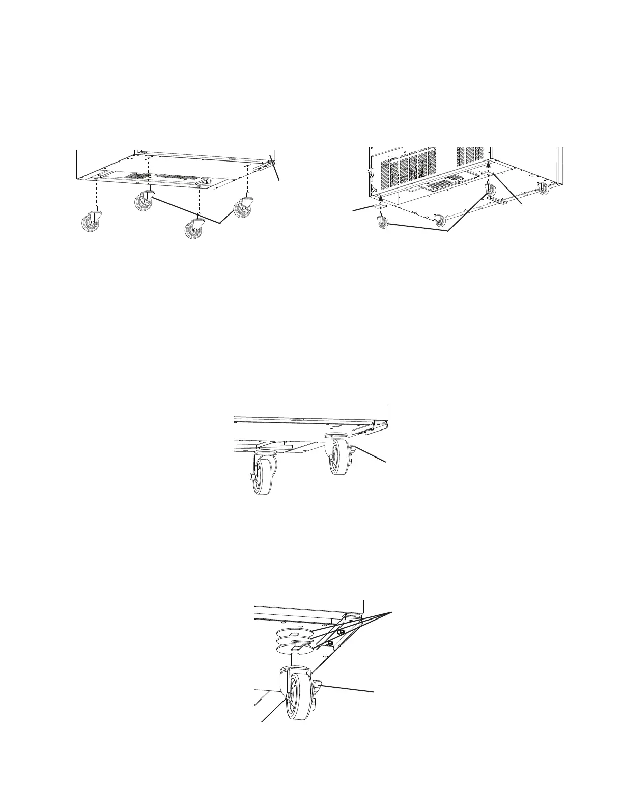 3) Attach the casters to the bottom of the appliance. Locking casters should be attached to