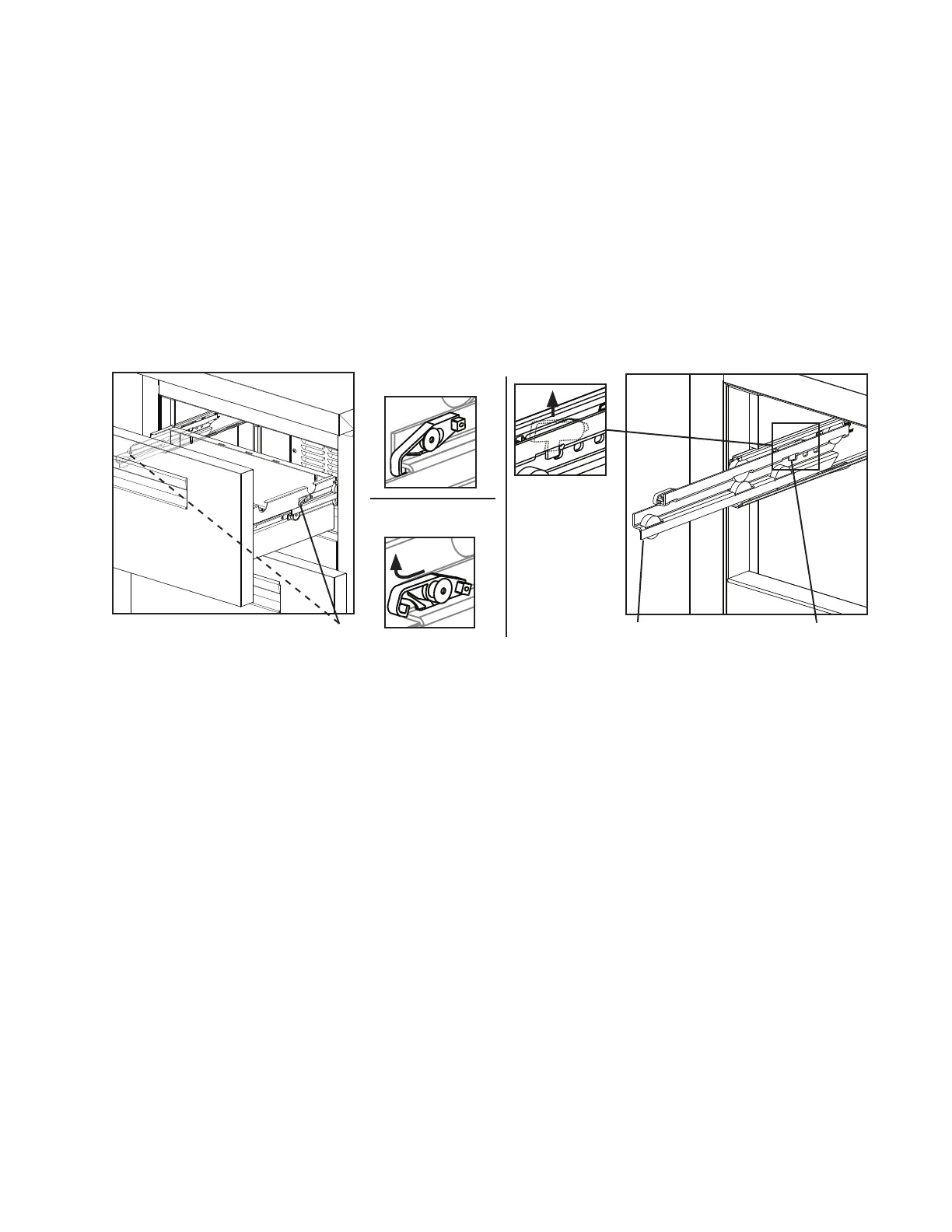 • To remove a drawer slide (center slide containing rollers): Push up on the stop