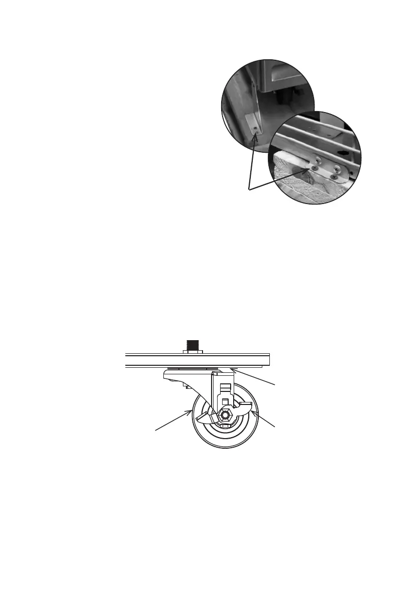 top edge of the caster must make rm contact with the reinforcement assembly.