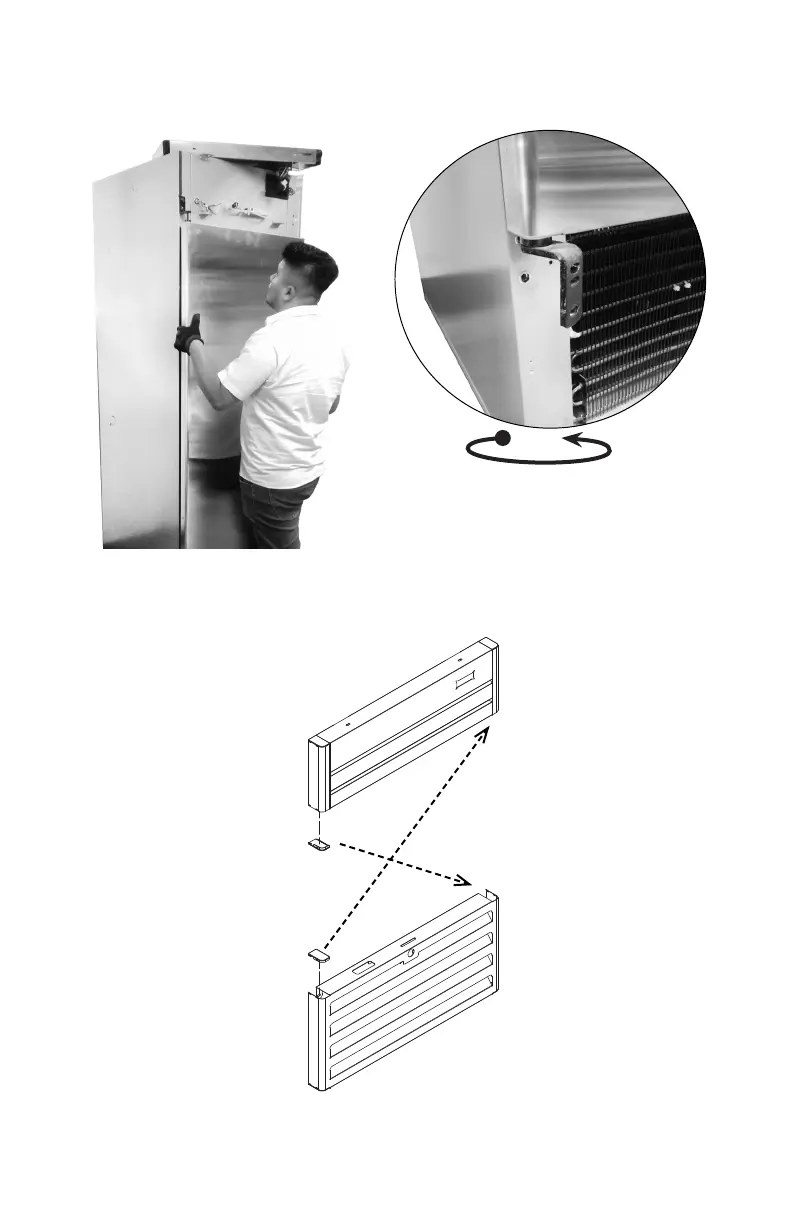 Step 8. Insert the door into the upper hinge and hold it while placing