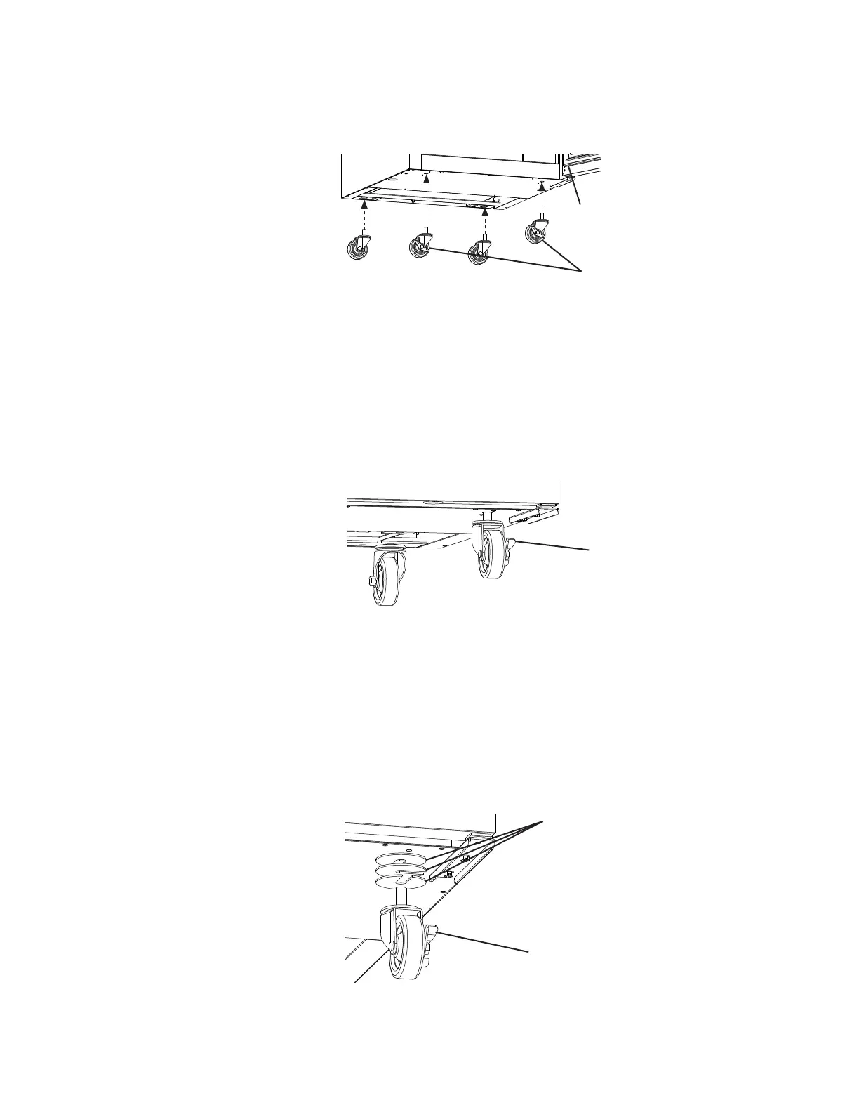 3) Attach the casters to the bottom of the appliance. Locking casters should be attached