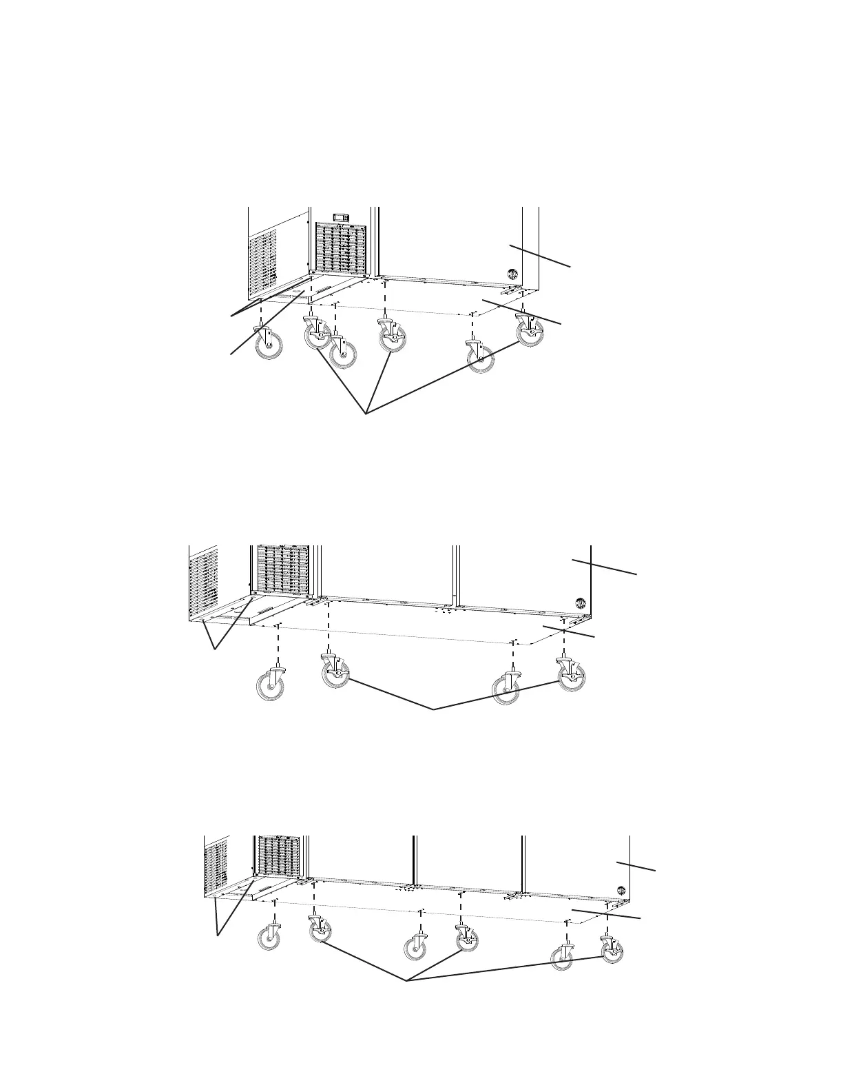 3) Attach the casters to the bottom of the appliance. Locking casters should be attached to