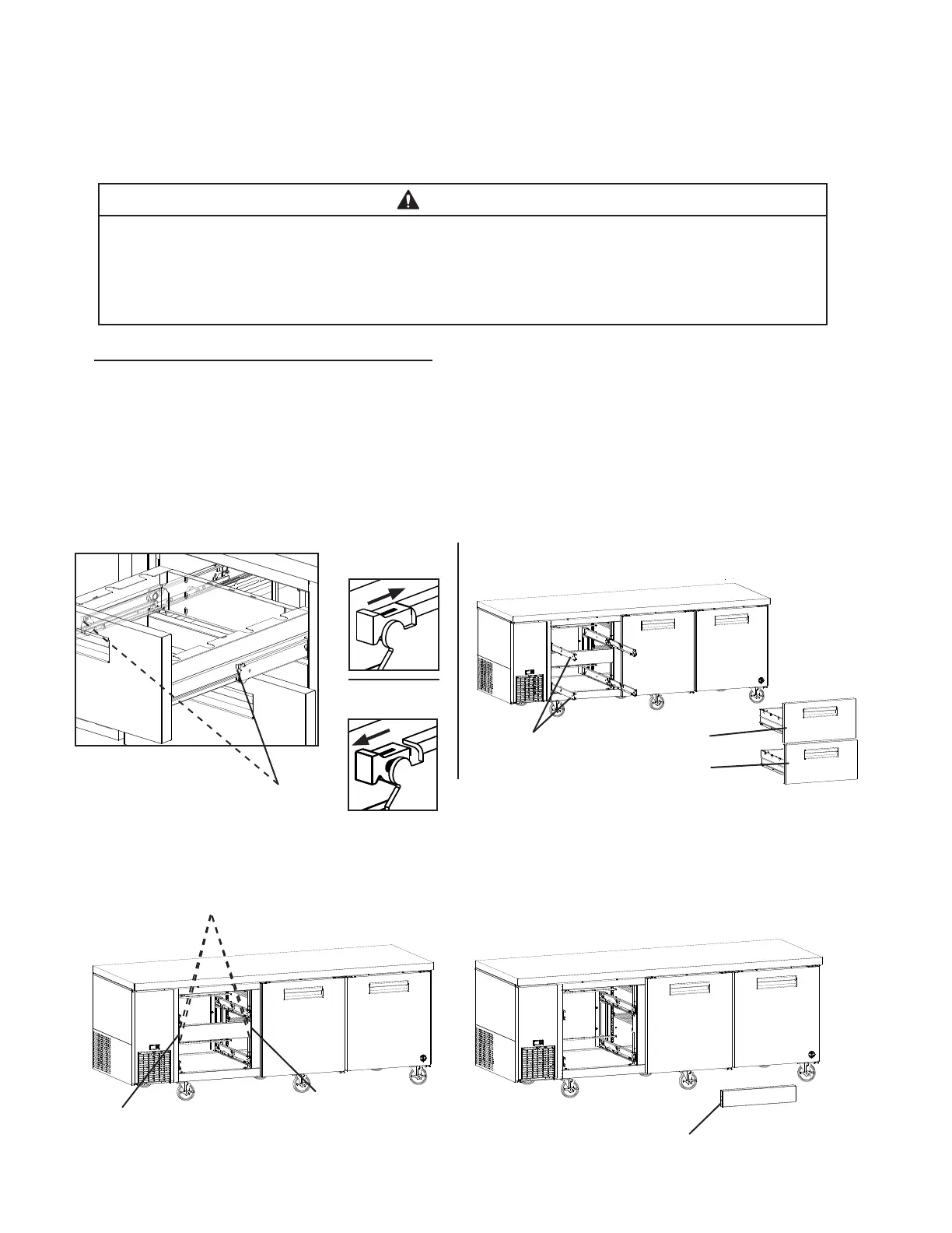 WARNING! Be sure to close the safety clips when reinstalling the drawer.