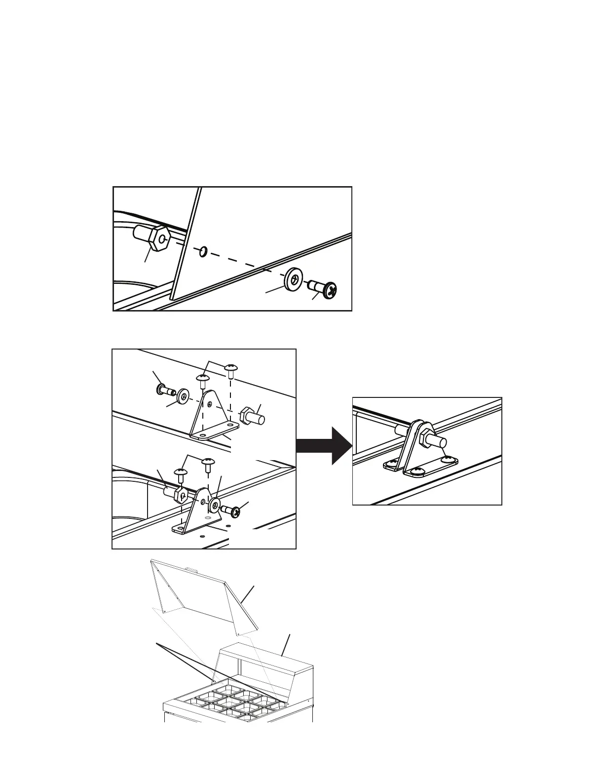 screws to the center hinge brackets, then secure the center hinge brackets using the