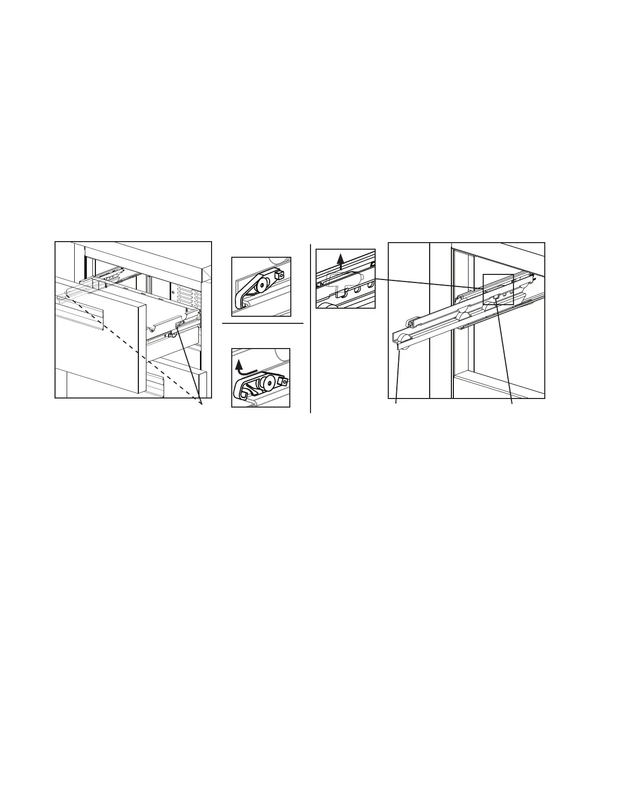 • To remove a drawer slide (center slide containing rollers): Push up on the stop