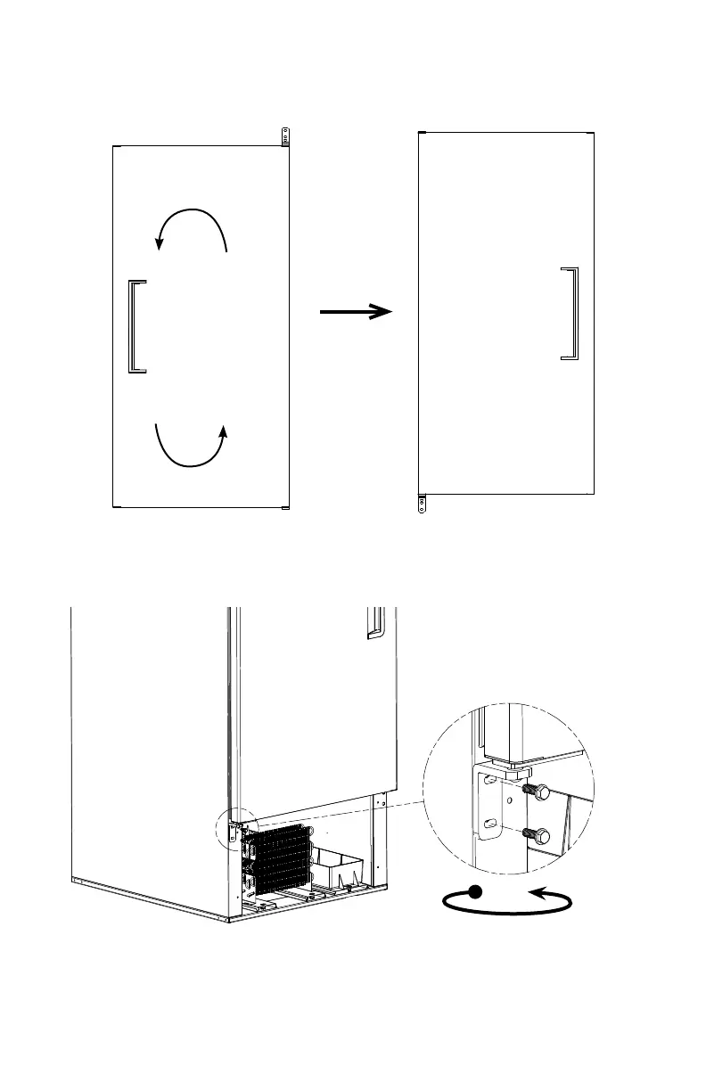 6. Rotate the door, along with the hinges, 180°, as shown in the