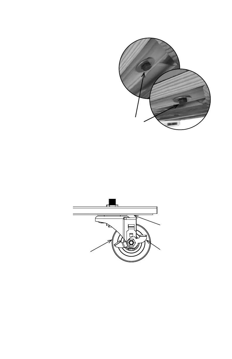 top edge of the caster must make rm contact with the reinforcement assembly.