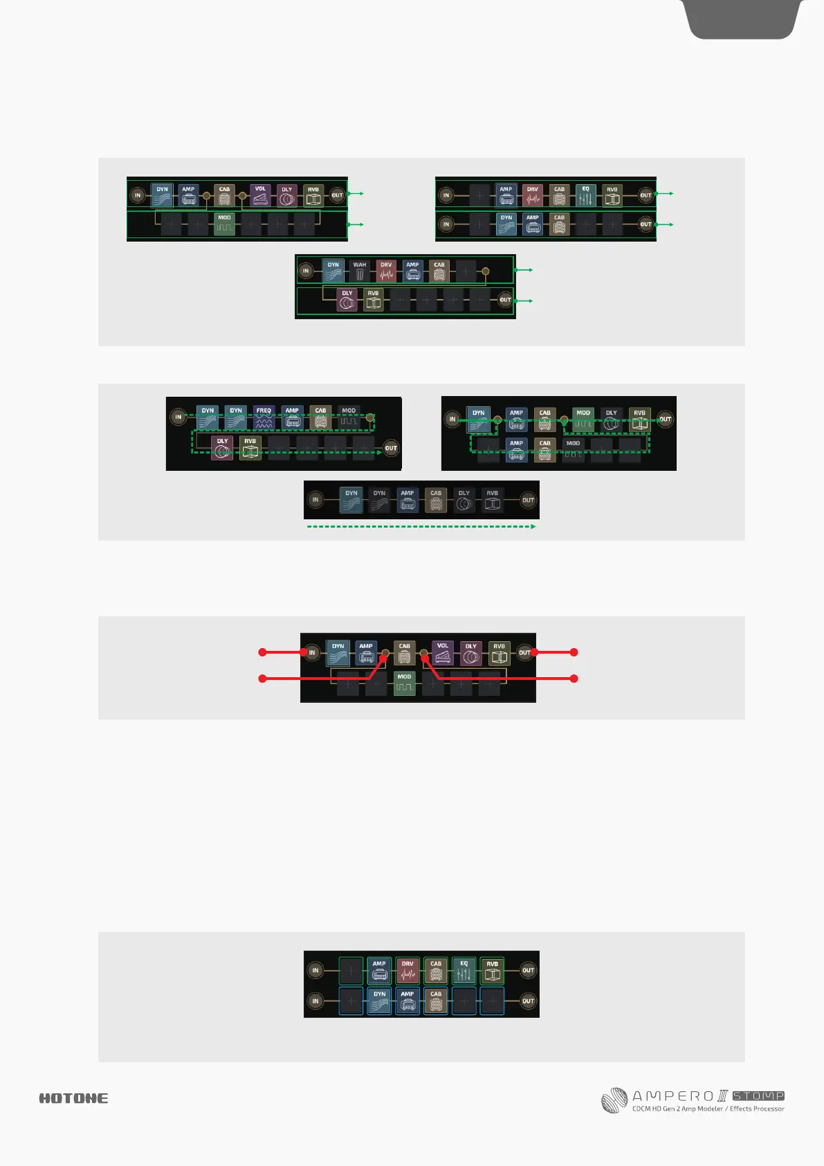 The upper effects chain is called effects chain A (or simply “chain A”), the lower chain is called effects chain B (or simply “chain B”):