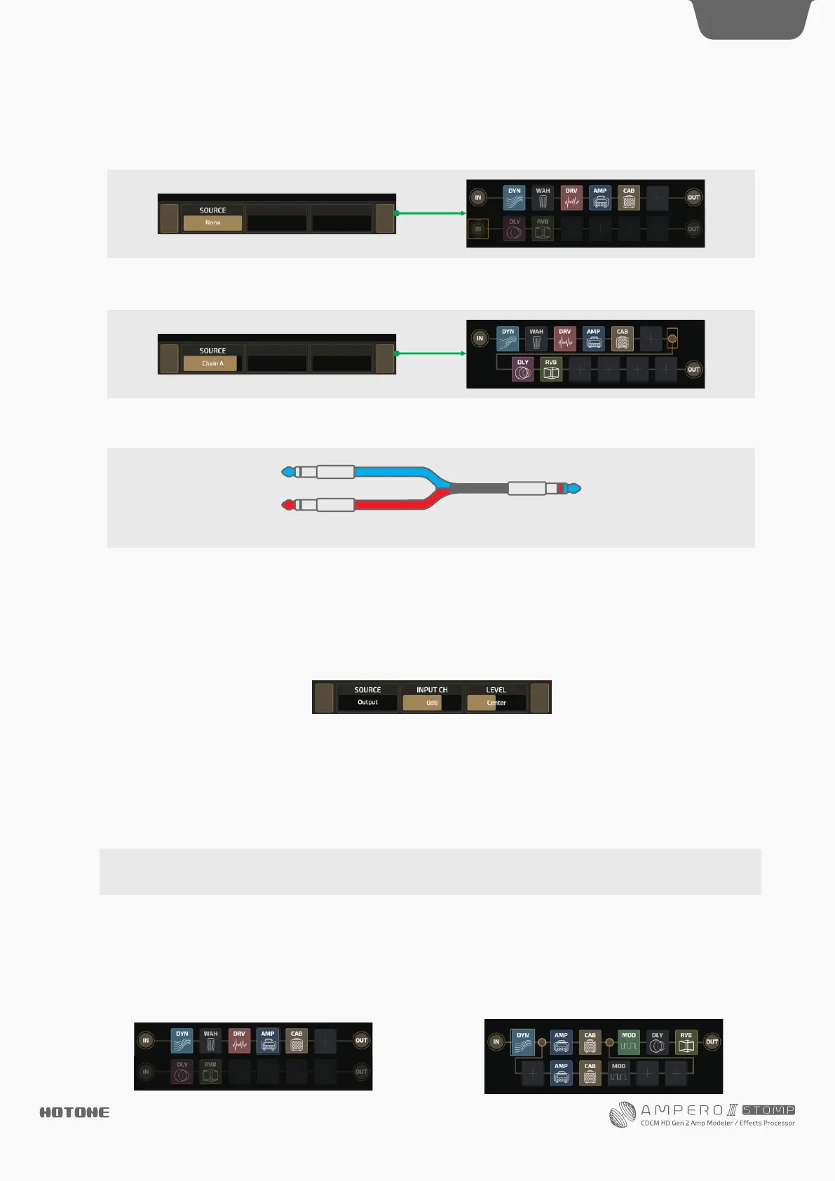 •Chain B: For chain A only, which lets you connect chain A and B in series (see Effects Chain Types section on for details) page 14