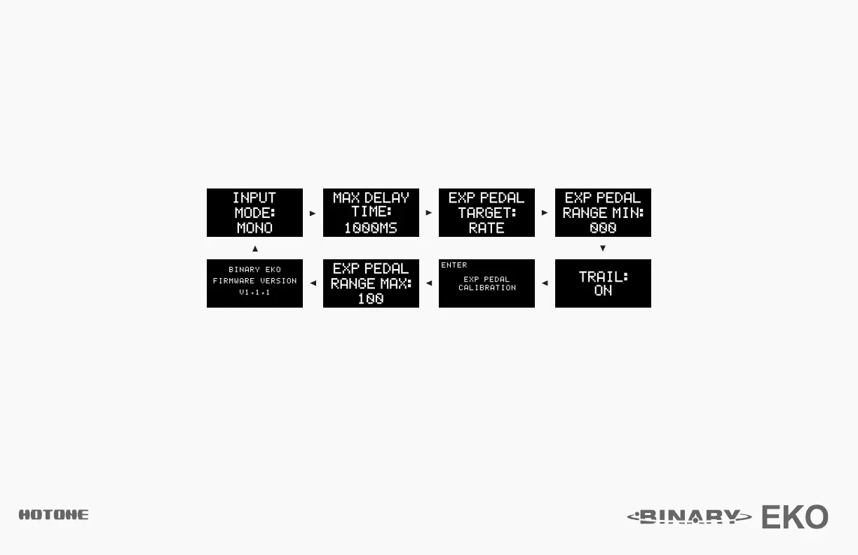 Press the GLOBAL button repeatedly to cycle through input mode, max delay time, expression pedal, trail settings and