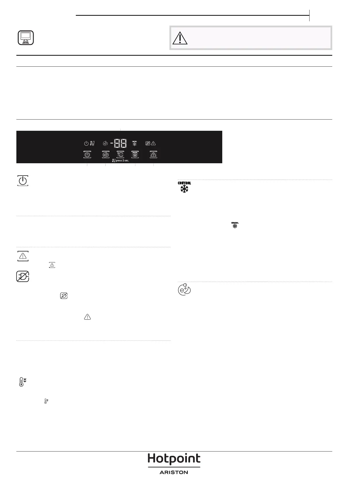 της θερμοκρασίας στο εσωτερικό του καταψύκτη. Η κόκκινη ενδεικτική