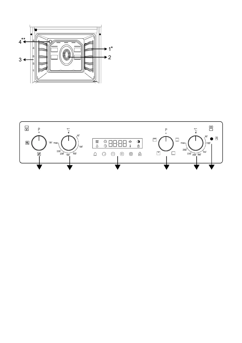 3 Timer 4 Function knob - Upper cooking sec-
