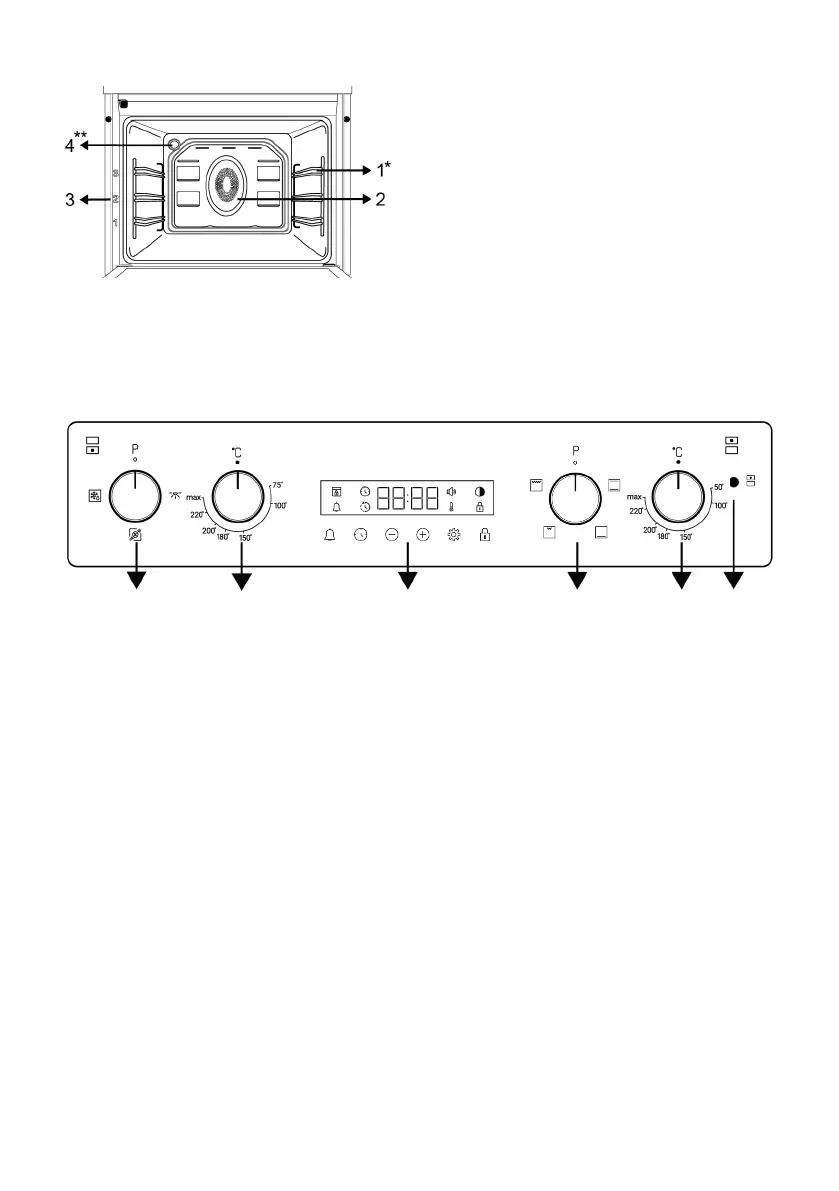 3 Timer 4 Function knob - Upper cooking sec-