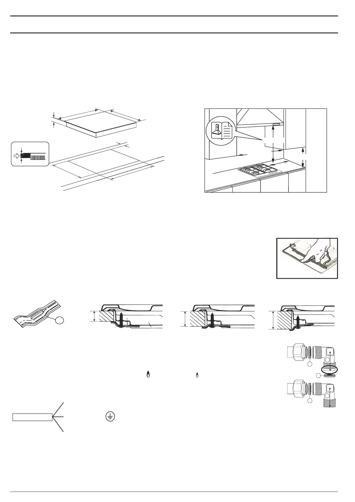 • Se sotto il piano di cottura non è previsto un forno, inserire un pannello separatore che abbia una supercie pari almeno all’apertura nel piano di lavoro. Tale