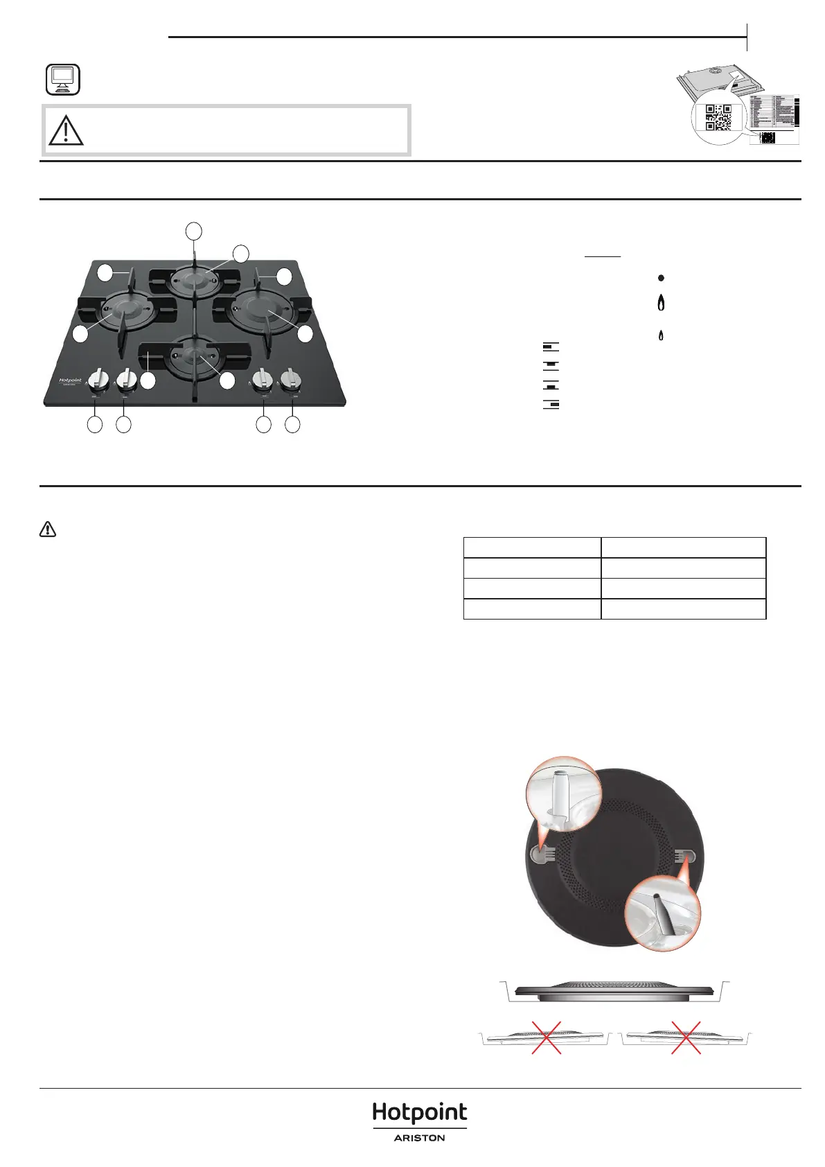 Questo piano di cottura è dotato di bruciatori con diametri diversi. Al fine di ottenere