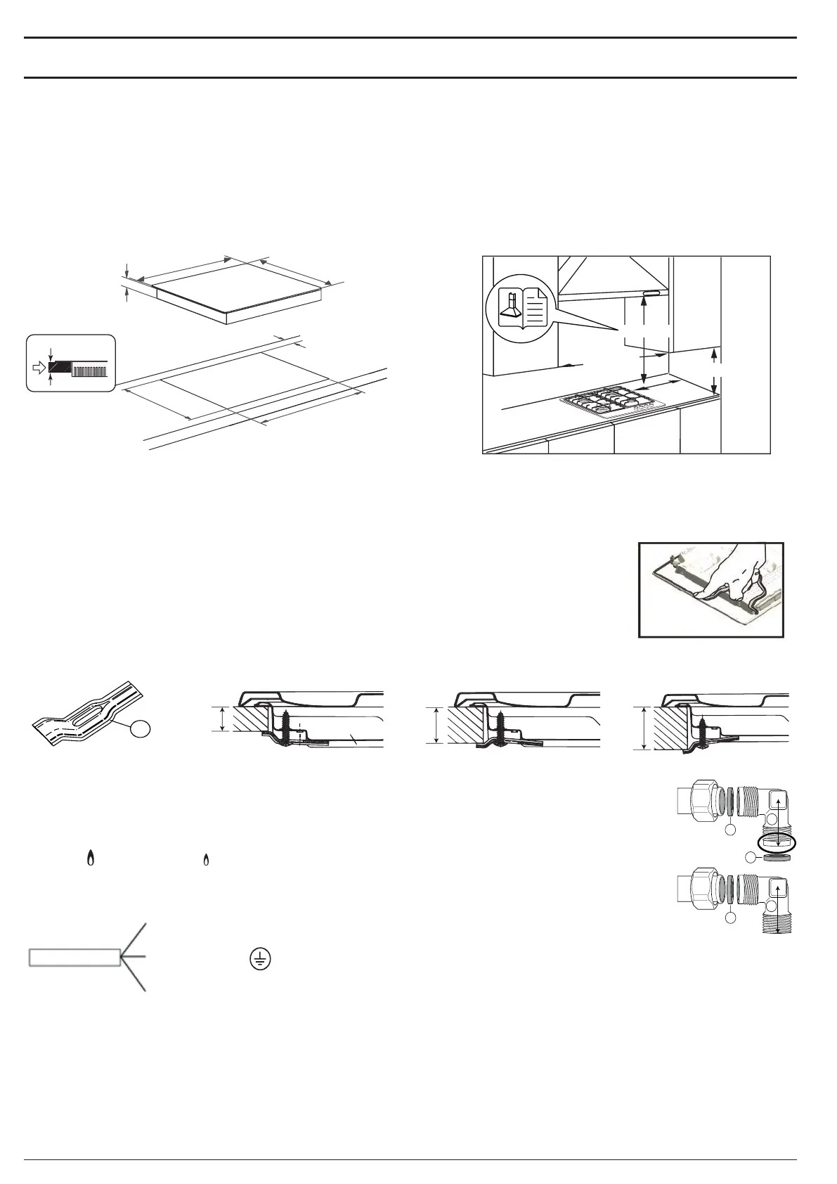 • If there is no oven beneath the hob, insert a separator panel that has a surface at least equal to the opening in the work surface. This panel must be positioned