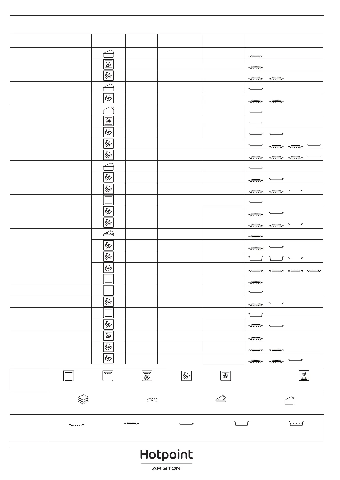 RECIPE FUNCTION PREHEAT TEMPERATURE (°C) DURATION (MIN.) SHELF AND ACCESSORIES