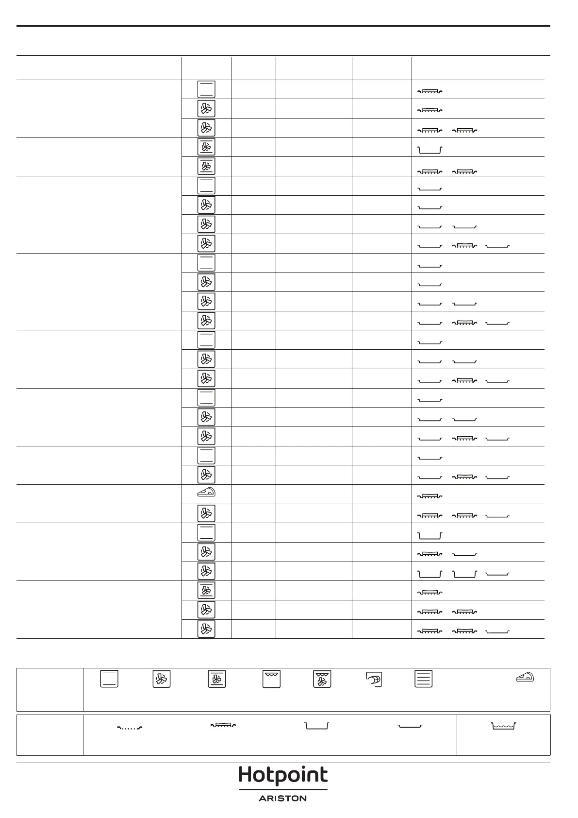 RICETTA FUNZIONE PRERISC. TEMPERATURA (°C) DURATA (MIN.) RIPIANI E ACCESSORI