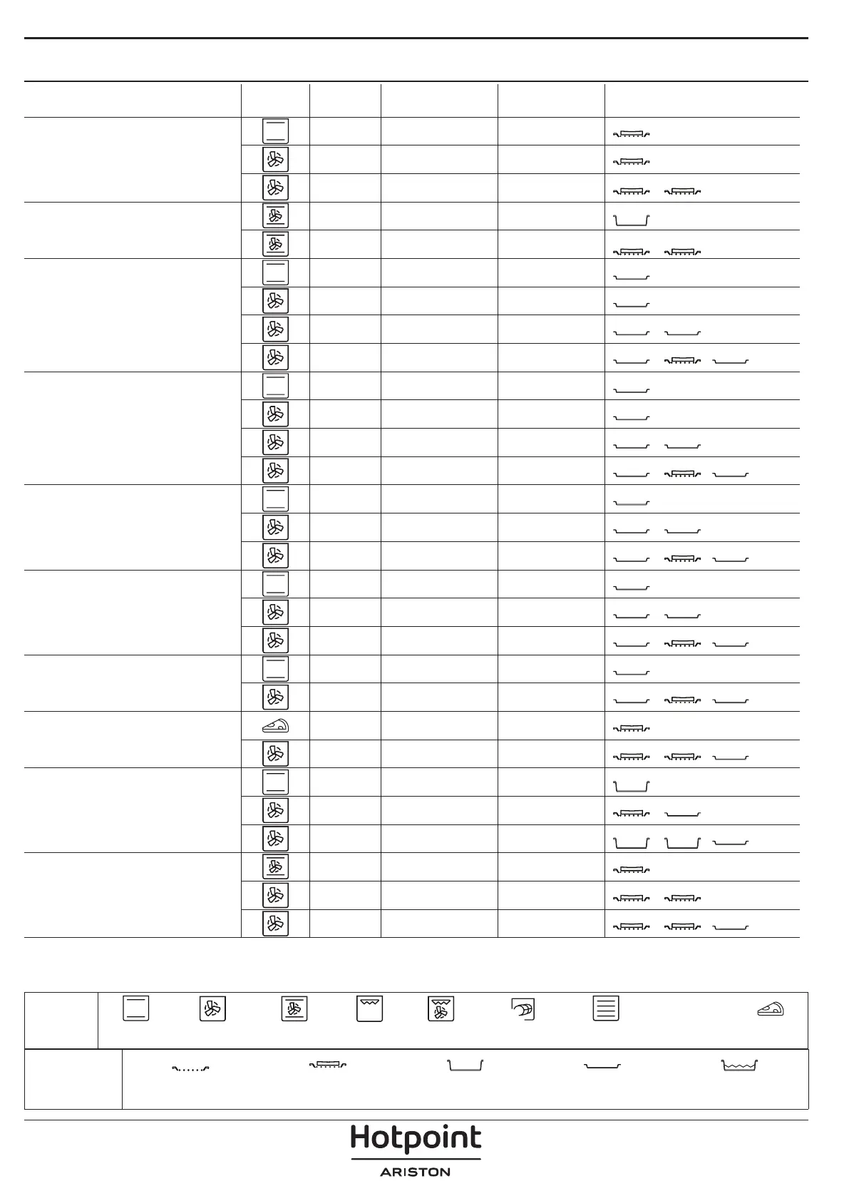 RICETTA FUNZIONE PRERISC. TEMPERATURA (°C) DURATA (MIN.) RIPIANI E ACCESSORI