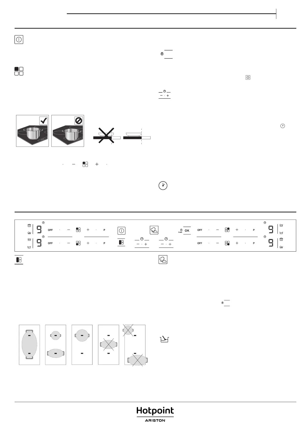 IMPORTANT: Place the pots in the center of the cooking zone so that they
