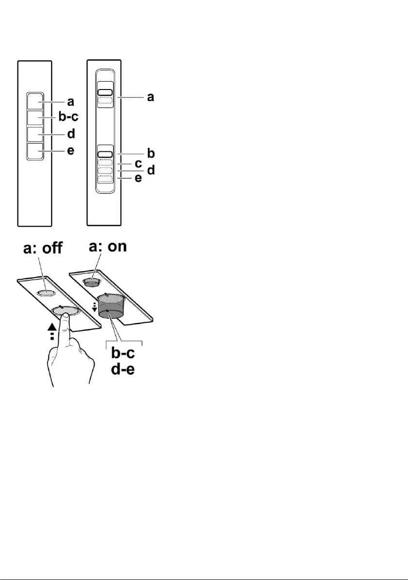 De kap is voorzien van een bedieningspaneel met een schakelaar voor de snelheid van afzuiging en een schakelaar voor de
