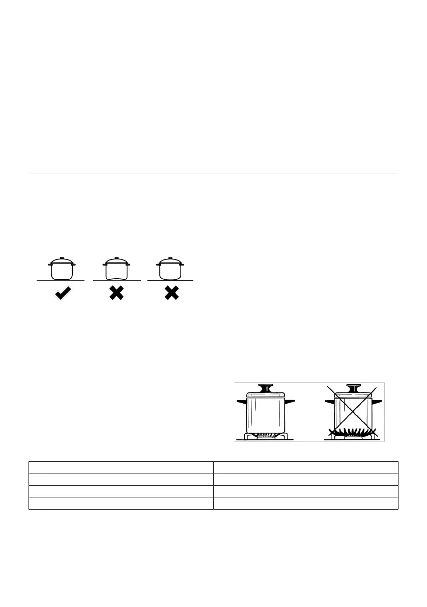 • The size of the cooking pots/pans shall